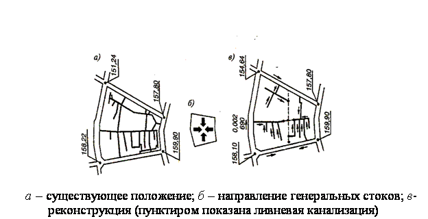 Рис. 10.14. – Отвод воды с межмагистральной просевшей территории методом вертикальной планировки