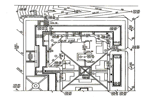 Отвод поверхностных вод вертикальной планировкой на застроенных территориях имеет свою специфику. Такая планировка в условиях плотной застройки весьма сложна. Здесь необходимым условием является высотная увязка проектных отметок дворовых участков по двум направлениям.