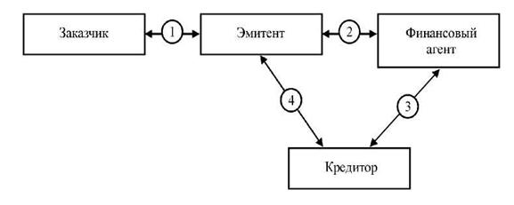 По данной схеме заключаются следующие виды договоров: между заказчиком и эмитентом — договор о выполнении функций заказчика и эмитента облигаций жилищного займа; между эмитентом и финансовым агентом — договор о выполнении функций финансового агента;