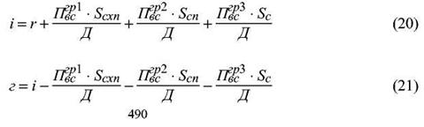 Примем, что по прогнозам ожидается рост стоимости сельскохозяйственной продукции в сельской местности на 8% и на семена — 1%. Тогда реальная ставка кредитного процента составит 9,67%, а номинальная — 10,43% (для расчета используются формулы (20) и (21)) [91].