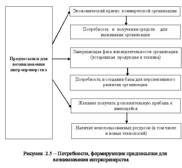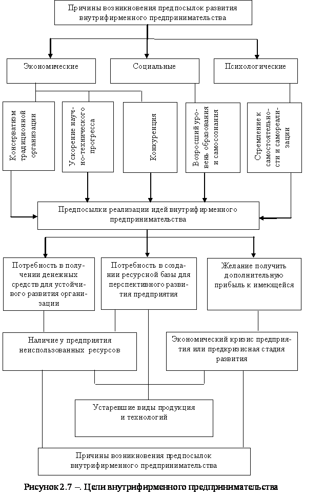 - анализ предпосылок для развития внутрифирменного предпринимательства;