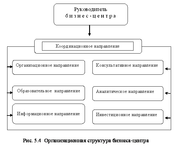 Координационное направление – координация деятельности всех структурных звеньев бизнес-центра: