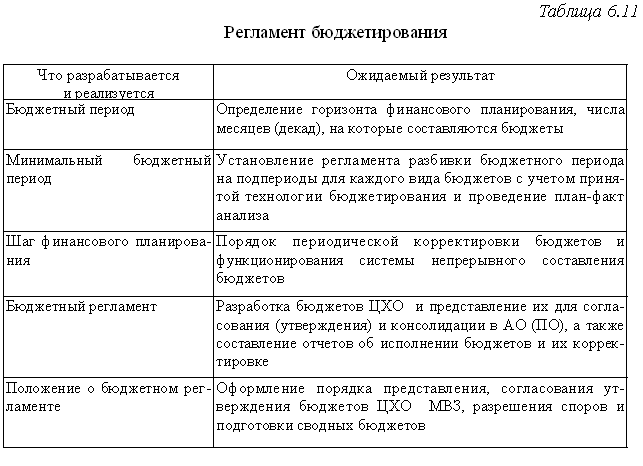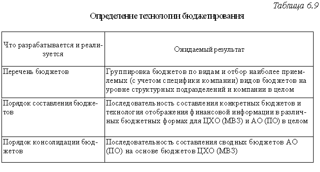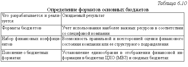 - разрабатывается порядок (последовательность) составления различных бюджетов для ЦХО МВЗ и АО (ПО) в целом;