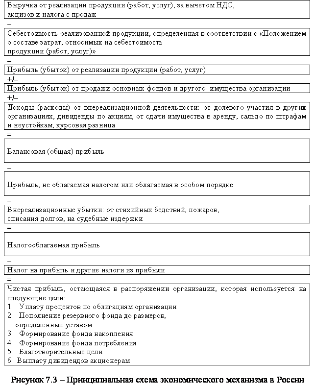 Действующий экономический механизм хозяйствования организаций в России сложился в 1991-92 гг. С тех пор в него внесено огромное число поправок и дополнений, усовершенствований и других новшеств, но его принципиальная схема остается неизменной (рис. 7.3). Более того, инновации неминуемы и в дальнейшем.