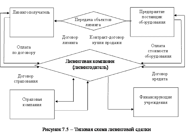 В классической лизинговой сделке взаимоотношения между субъектами строятся по следующей схеме: будущий лизингополучатель, нуждающийся в определенных видах имущества, самостоятельно подбирает владеющего этим имуществом поставщика. В силу отсутствия собственных средств и доступа к заемным средствам для приобретения его в собственность он обращается к будущему лизингодателю, имеющему необходимые средства, с просьбой об участии в сделке. Участие лизингодателя выражается в покупке им имущества у поставщика в собственность и последующей его передаче лизингополучателю во временное пользование на оговоренных в лизинговом соглашении условиях.