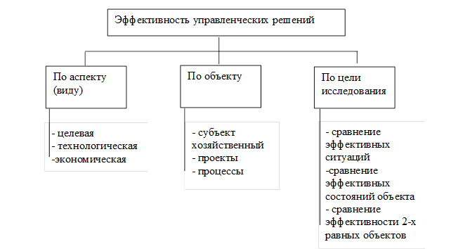 Эффективность управленческих решений характеризует качество: обменных процессов между организацией и ее внешней средой, так как организация и внешняя среда находятся в процессе постоянного информационного обмена; процессов привлечения ресурсов, их трансформации в готовые продукты и услуги и распределение во внешней среде. Чем выше качество этих процессов, тем выше эффективность управленческих решений.