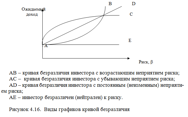 Графически отношение к риску выражается с помощью кривых безразличия (индифферентности) (рис. 4.16.).
