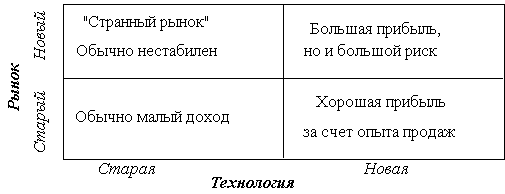 Соотношение между технологией и фазой развития рынка фирмы определяется так называемой матрицей Ансоффа (рис. 21).