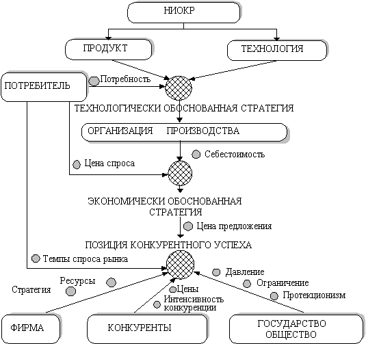 – конкурентный статус фирмы в НИОКР, производстве, управлении;