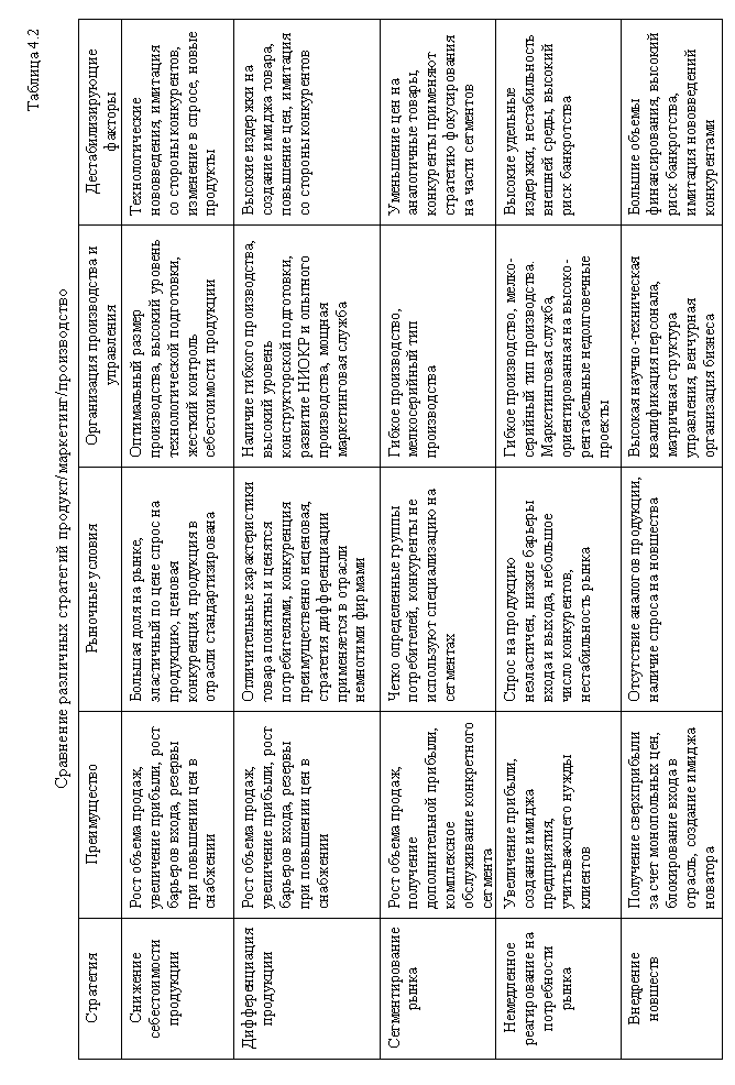 Сравнение различных стратегий инноваций по этим факторам приведено в табл. 4.2 [26].