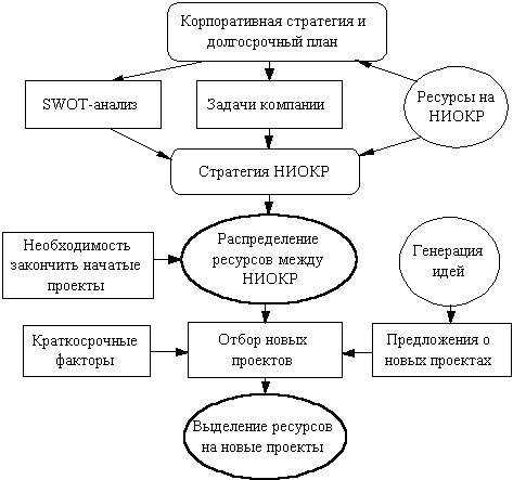 3. Важнейшим элементом стратегии НИОКР в корпорации является выбор и управление портфелем НИОКР в условиях ограниченности ресурсов корпорации, исходя из целей, общей стратегии и миссии фирмы.
