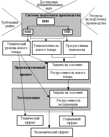 Рис. 29. Влияние системы подготовки производства на формирование конечного эффекта разработки и использования нового товара