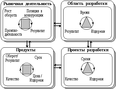 Рис. 30 демонстрирует тесное смыкание внешних и внутренних стратегических факторов (индикаторов) в определении эффективности НИОКР.