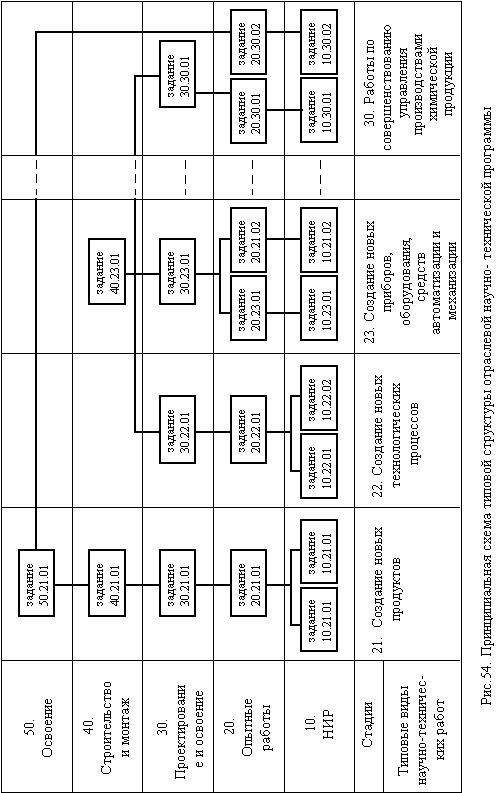 Схема структуры взаимосвязи заданий программы по стадиям и видам работ, обеспечивающей достижение целей программы, и система соответствующих шифров заданий представлены на рис. 54 [49].