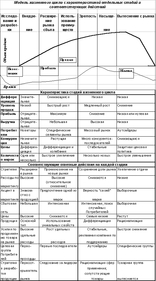 Успех маркетинговой деятельности предприятия зависит от степени согласованности различных стадий основных жизненных циклов, т.е. индивидуального жизненного цикла продукции и общего отраслевого жизненного цикла отрасли в целом. Ситуация на рынке меняется на каждой стадии жизненного цикла и требует соответствующего изменения стратегии и тактики поведения предприятия на рынке.