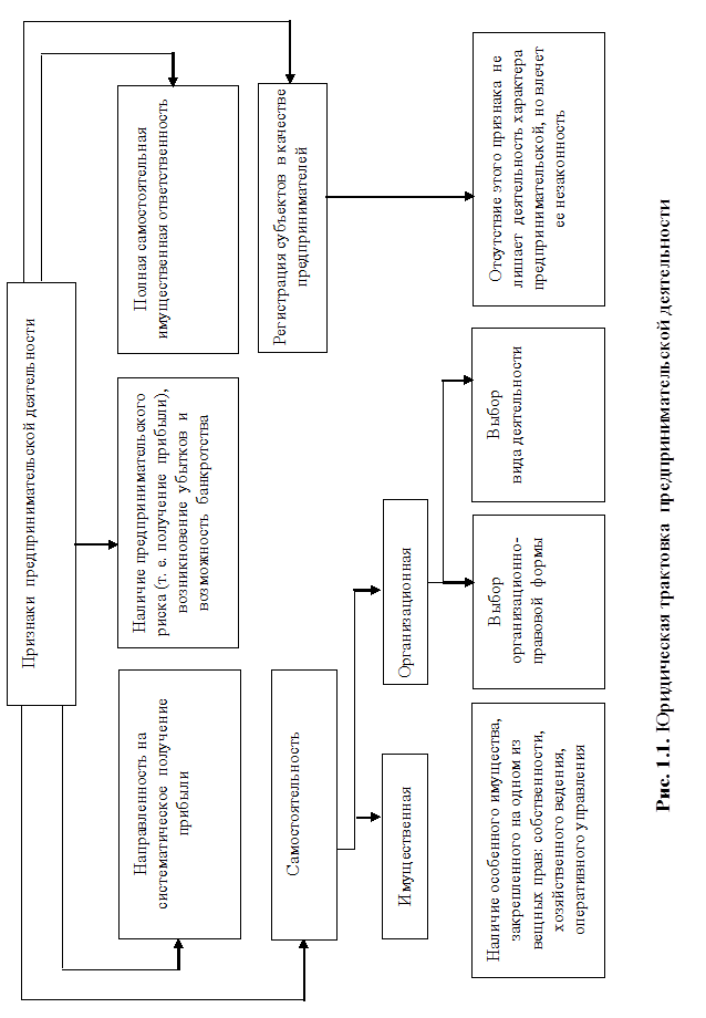 По современному российскому законодательству под предпринимательской деятельностью понимается «самостоятельная, осуществляемая на свой риск деятельность, направленная на систематическое получение прибыли от пользования имуществом – продажи товаров, выполнения работ или оказания услуг лицами, зарегистрированными в этом качестве в установленном законом порядке» (рис. 1.1).