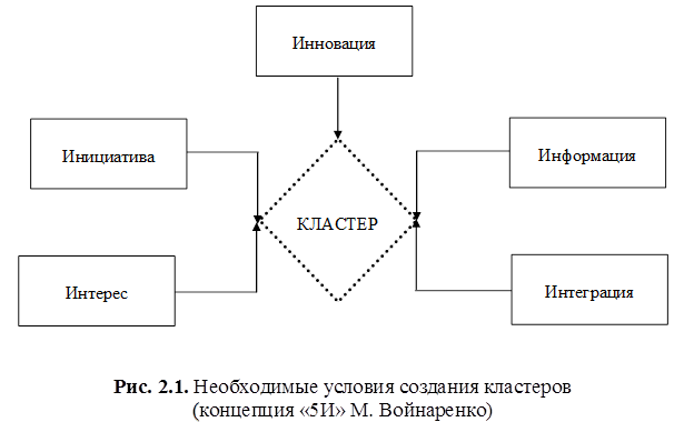 Для создания кластера как жизнеспособной, самодостаточной, успешной и эффективной организации необходимо наличие пяти основных условий (рис. 2.1).