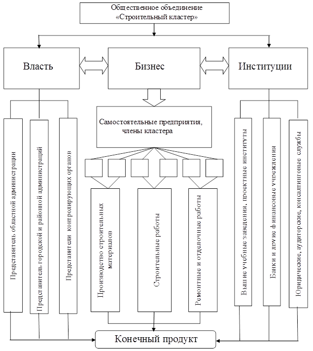 Как правило, кластеру не присуща ориентация на внутреннего потребителя. Создание строительного или жилищно-коммунального кластера – это особая форма кластерной модели, поскольку строительство и жилищно-коммунальное хозяйство – это виды деятельности, ориентированные, прежде всего, на внутренний рынок, основной продукцией которого является строительство и обслуживание современного комфортного жилья.