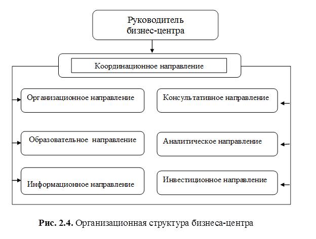 Координационное направление – взаимосвязь, согласование деятельности всех структурных звеньев бизнес-центра: