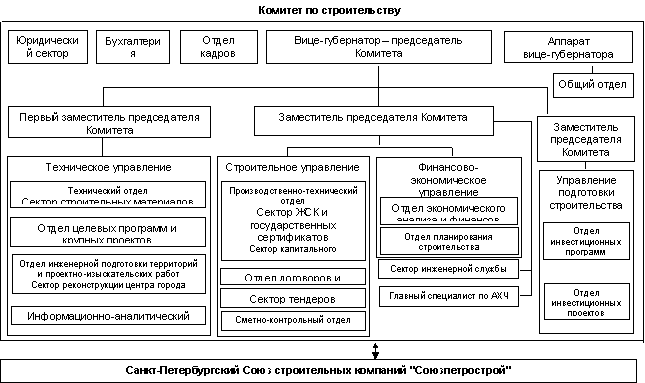 Еще одним важным звеном в управлении Петербургским ИСК является Санкт-Петербургский союз строительных компаний ("Союзпетрострой") (см. рис. 1.3).