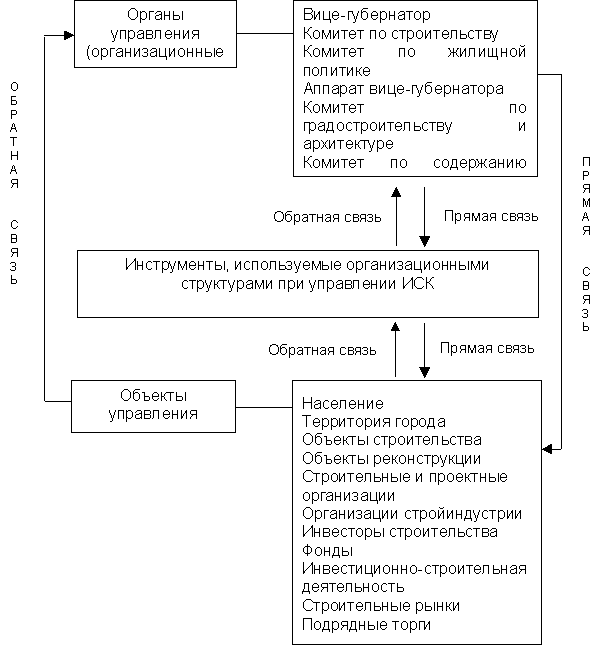 В современных условиях система управления ИСК должна включать управление градостроительством, строительным комплексом города, жилищной политикой, содержанием жилищного фонда (рис. 1.5) [47].