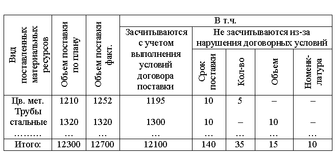 Особое внимание при анализе уделяется выполнению плана МТС по срокам поставки материальных ресурсов или ритмичности поставок.