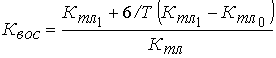 Коэффициент восстановления платежеспособности Квос определяется как отношение расчетного коэффициента текущей ликвидности к его нормативу. Расчетный коэффициент текущей ликвидности определяется как сумма фактического значения коэффициента текущей ликвидности на конец отчетного периода и изменения значения этого коэффициента между окончанием и началом отчетного периода в пересчете на период восстановления платежеспособности, установленный равным шести месяцам: