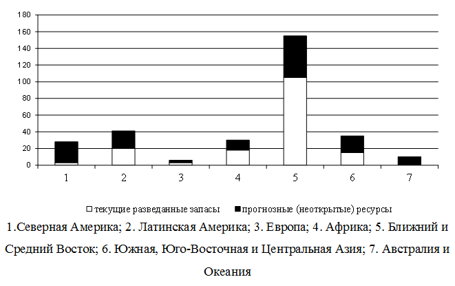 Наибольший объем неоткрытых запасов нефти по состоянию на 2004 год наблюдается на ближнем и Среднем Востоке, в Северной Америке и Латинской Америке, в Азии.