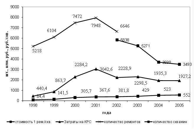 Объем КРС составил за 2004 г. – 3698 скважин. по всем запланированным в компании показателям ожидается перевыполнение.