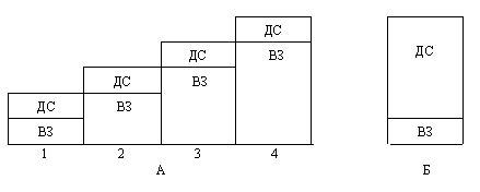 Рис. 4.5.1. Сотношение затрат и добавленной стоимости при неконсолидированном (А) и консолидированном (Б) производстве: