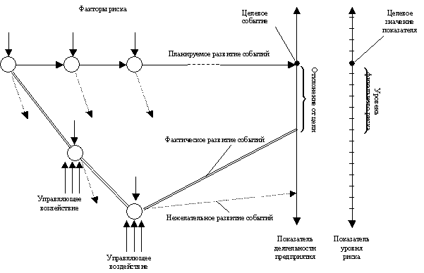 Таким образом, концепция приемлемого риска, ориентируя хозяйственного руководителя на сознательное, рациональное – в противовес авантюрному, безответственному – отношение к риску, предлагает важные для деловой активности в сфере материального производства методические рекомендации. Во-первых, риск – это не статическая характеристика, а управляемый параметр, на его уровень можно и, самое главное, необходимо оказывать воздействие. Во-вторых, поскольку такое воздействие можно оказать только на «познанный» риск, то его надо анализировать, т. е. выявлять и идентифицировать факторы риска, оценивать последствия их проявления и т.д. В-третьих, для корректного учета риска в деятельности производственного предприятия полезно различать «стартовый» уровень риска, или риск замысла первоначальной идеи проекта (хозяйственного мероприятия) или варианта стратегии, и «финальный» уровень риска, оценка которого произведена (для выбранной стратегии предприятия, принятого варианта проекта, намеченного к осуществлению хозяйственного мероприятия и т.п.) после выполнения необходимых процедур оценки риска и разработки комплекса мероприятий по смягчению или нейтрализации последствий проявления факторов риска.