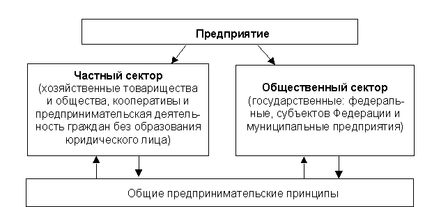 По форме собственности предприятия могут быть подразделены на частные и общественные (рис. 2.1). Предприятия частного сектора экономики различаются в зависимости от того, одно или несколько лиц являются их владельцами; от ответственности за деятельность предприятия, способа включения единоличных капиталов в общий капитал предприятия. Общественный сектор экономики - это государственные (федеральные и субъектов Федерации) и муниципальные предприятия.