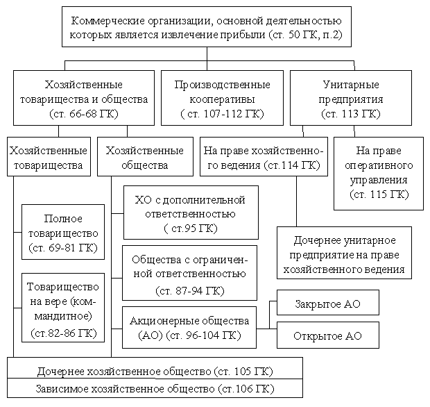Рис. 2.4. Организационно-правовые формы коммерческих организаций