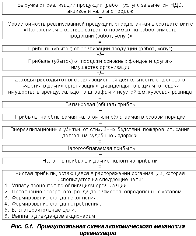 Действующий экономический механизм хозяйствования организаций в России сложился в 1991-92 гг. С тех пор в него внесено огромное число поправок и дополнений, усовершенствований и других новшеств, но его принципиальная схема остается неизменной (рис. 5.1). Более того, инновации неминуемы и в дальнейшем.