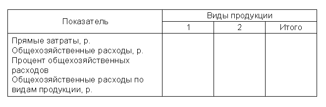 Составить ведомость распределения общехозяйственных расходов. База для распределения – прямые затраты. Форма ведомости представлена в таблице.