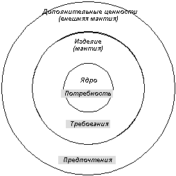 Мантия ценности – это ее материальное исполнение, то есть конкретный способ удовлетворения потребности, исполненный в материале. Мантия – это функциональные свойства продукта, именно к мантии клиент предъявляет свои требования.