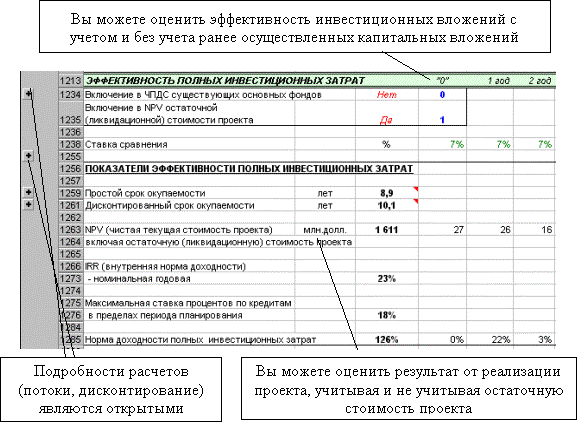 Модель является мощным и гибким инструментом специалистов, осуществляющих оценку инвестиционных идей - на предприятии, в банке, в проектной организации и органах государственного управления.