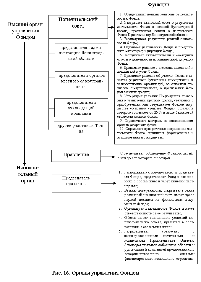 Правовое регулирование деятельности Фонда должно осуществляться в соответствии с Конституцией РФ, Гражданским Кодексом РФ, Федеральным законом РФ «О некоммерческих организациях», Уставом Ленинградской области, Уставами муниципальных образований Ленинградской области, Уставом Фонда и другими нормативными правовыми актами РФ, Ленинградской области и органов муниципальных образований Ленинградской области, направленных на развитие ИЖС в сельской местности.