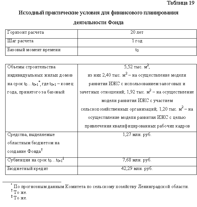 Исходные условия для дальнейших финансовых расчетов, связанных с деятельностью Фонда, представлены в табл. 19