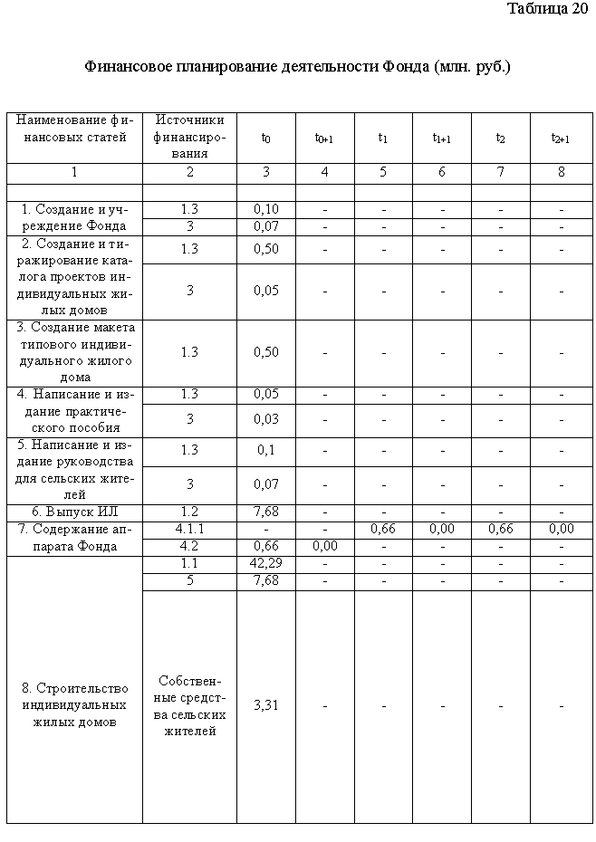 Произведем финансовое планирование деятельности Фонда (табл. 20)