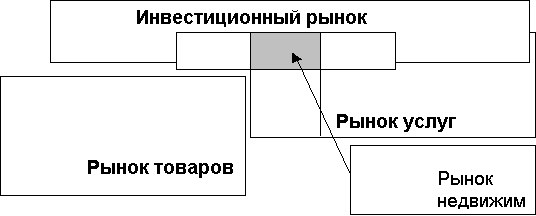 Наличие характерных черт, присущих товарному рынку, не исключает взаимосвязи между рынком недвижимости и рынком инвестиций. Они существуют как отдельные, самостоятельно функционирующие элементы единого рынка страны.