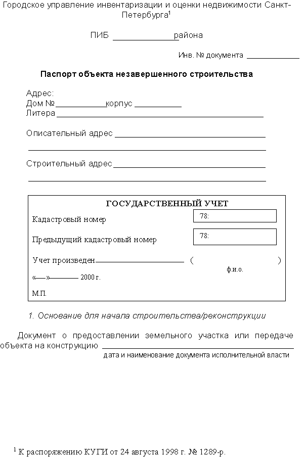 ПРИЛОЖЕНИЕ 3. ПАСПОРТ ОБЪЕКТА НЕЗАВЕРШЕННОГО СТРОИТЕЛЬСТВА