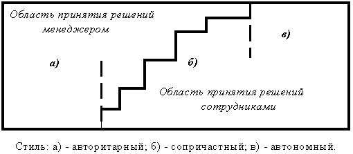 Рис. 44. Различие стилей управления (по участию в них исполнителей)