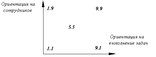 Стиль 5.5 (управление по среднему пути) - достигается компромисс между требованиями по работе и интересами сотрудников, средняя производительность труда.