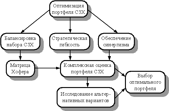 Одно из первых требований к набору СЗХ фирмы - его сбалансированность во времени. Это означает, что необходимо избегать синхронного начала и окончания жизненных циклов СЗХ. Желательно осуществить их разумное «перекрытие», т. е. несовпадение этапов жизненных циклов различных СЗХ, что обеспечит равномерное без спадов развитие деятельности фирмы.