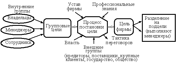 Выбор цели представляет, как правило, некий процесс компромиссов между интересами различных групп (рис.9).