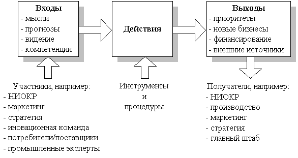 Создание комплексной команды ключевых игроков крайне важно. Энтузиазм такой команды, где все части правильно соединены, критичен для успеха технологической стратегии. Рис. 41 иллюстрирует модель входов и выходов, которая формирует основу этой части процесса
