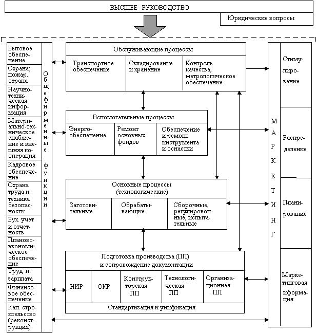 В помощь проектантам при выполнении разделов 3, 6, 7 инвестиционного проекта предлагается примерная функциональная структура производственного предприятия, на основе которой можно разработать его производственную и организационную структуры (рис. 9.12).