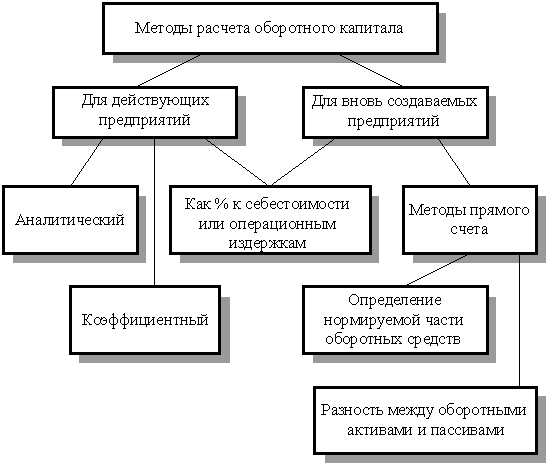 На рис. 9. 17 приведены методы расчета оборотного капитала для действующих и вновь создаваемых предприятий.