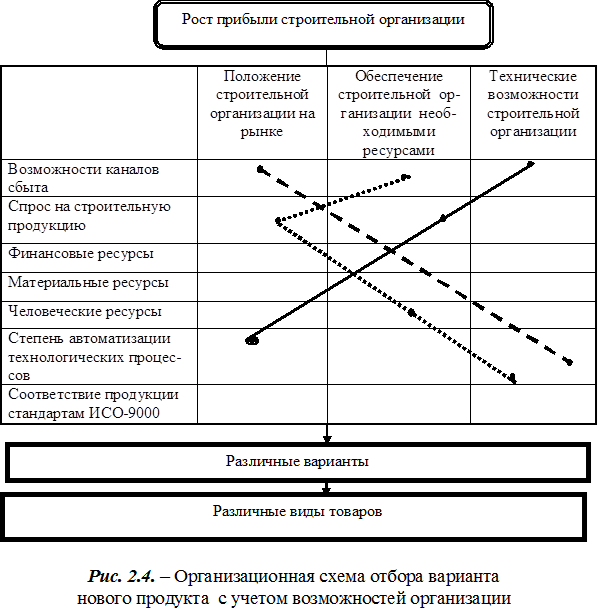 Таким образом, формируется организационная схема отбора вариантов продукции на основе потенциальных ресурсных возможностей строительной организации.